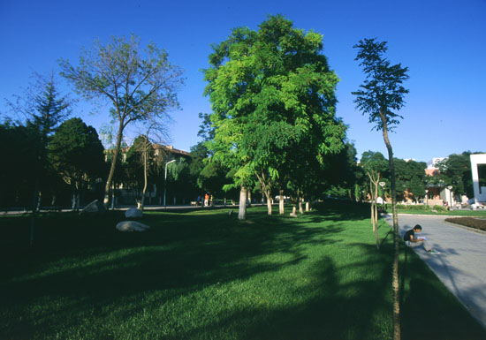我曾一度迷恋师大的春天,当兰州的花儿还不是很情愿开放的时候,中心广场周围的迎春总是最先争做报春的使者,在这里书声、花香与鸟语相和,出现在操场上晨练的胖姑娘,还有舞着太极的退休老教师,一切和谐极了!